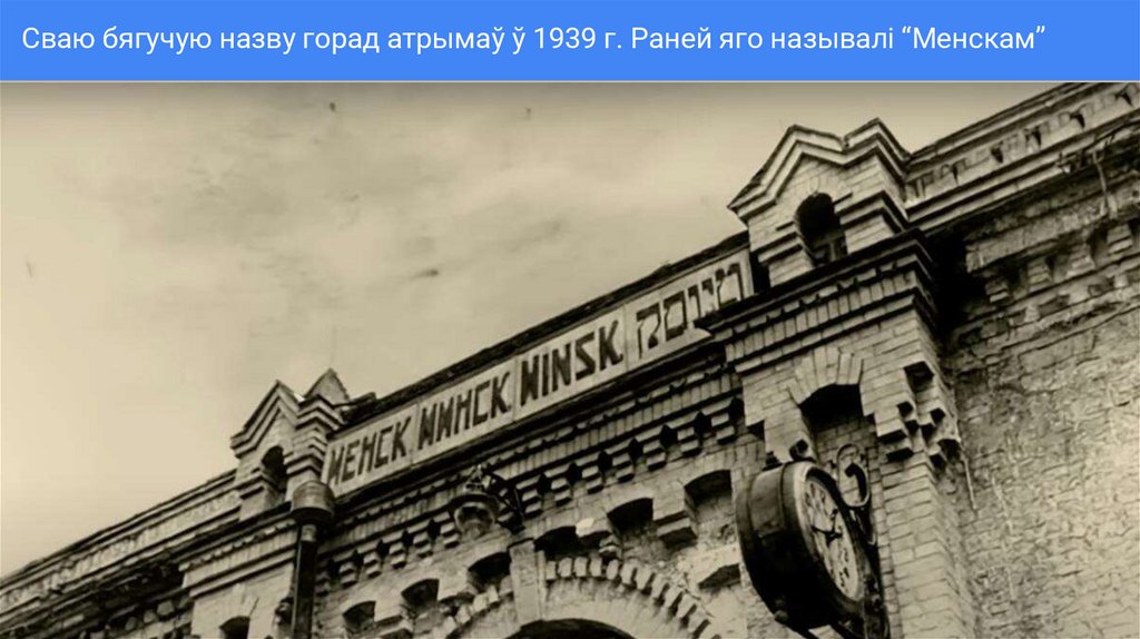 Сваю бягучую назву горад атрымаў ў 1939 г. Раней яго называлі “Менскам”8.