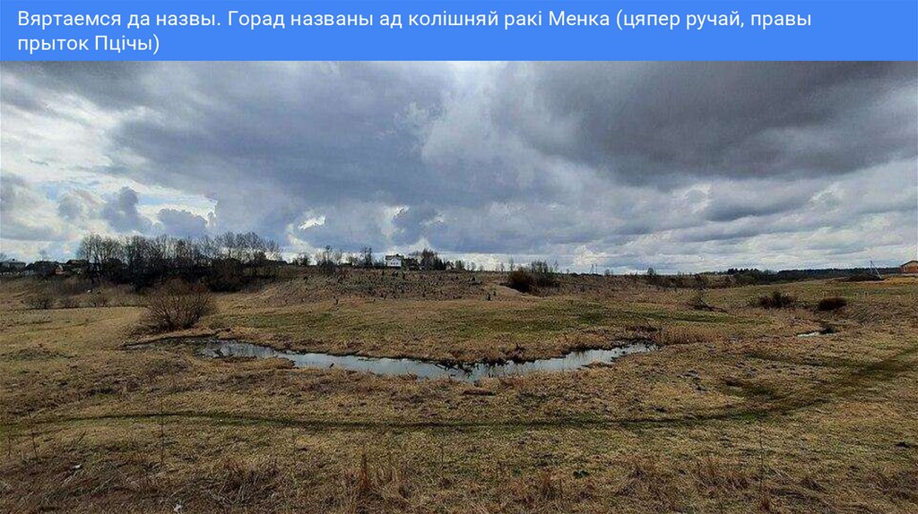 Вяртаемся да назвы. Горад названы ад колішняй ракі Менка (цяпер ручай, правыпрыток Пцічы)