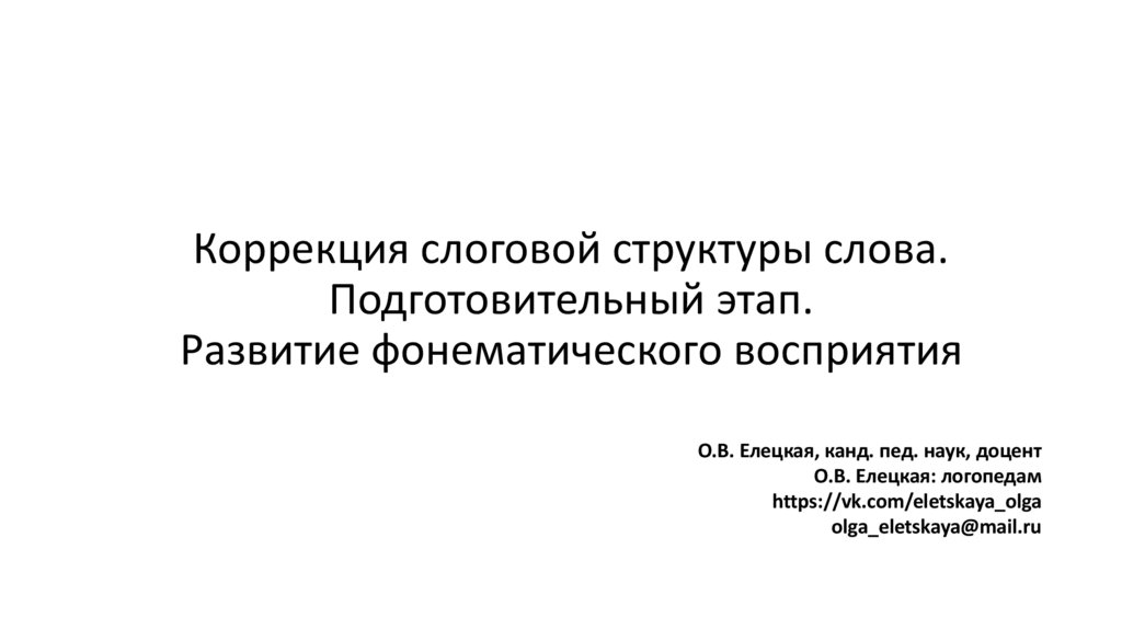 1. Коррекция слоговой структуры слова. Подготовительный этап. Развитие фонематического восприятия