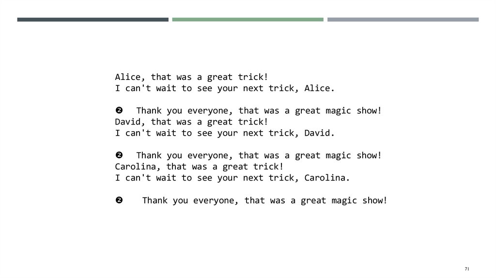 made your tuna sandwich»). После этого каждый сэндвич из первого