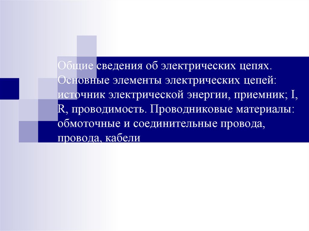 1. Общие сведения об электрических цепях. Основные элементы электрических цепей: источник электрической энергии, приемник; I, R,