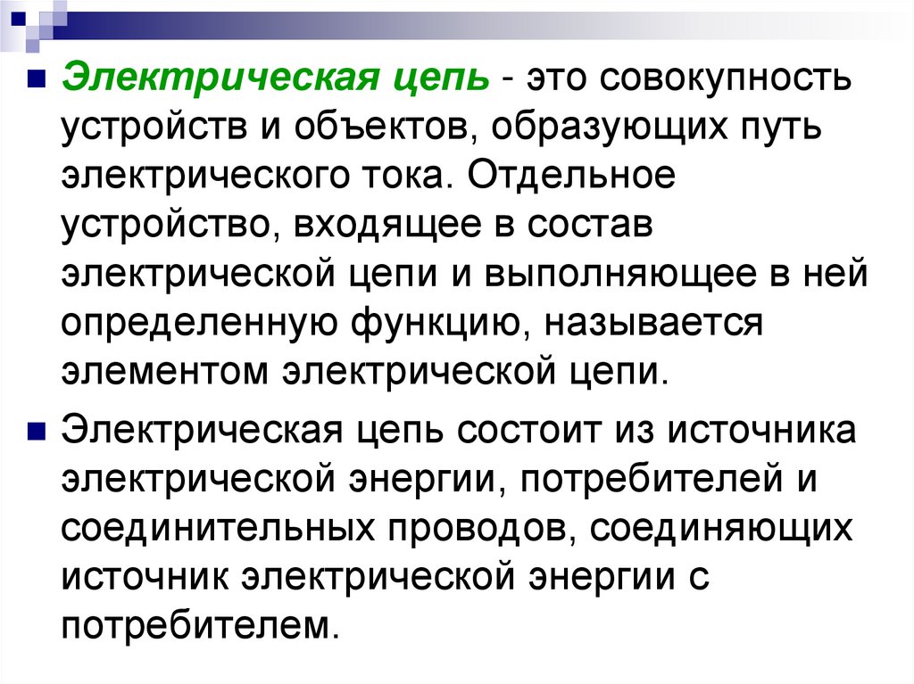 Электрическая цепь - это совокупностьустройств и объектов, образующих путь
