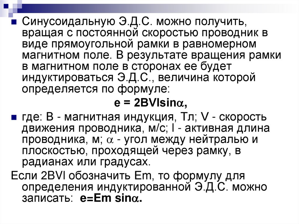 изменении Э.Д.С., напряжения и токи называются амплитудными