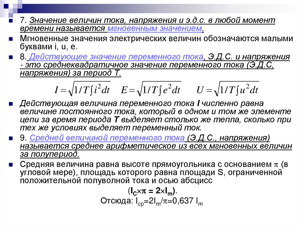 9. Средней величиной переменного тока (Э.Д.С., напряжения)