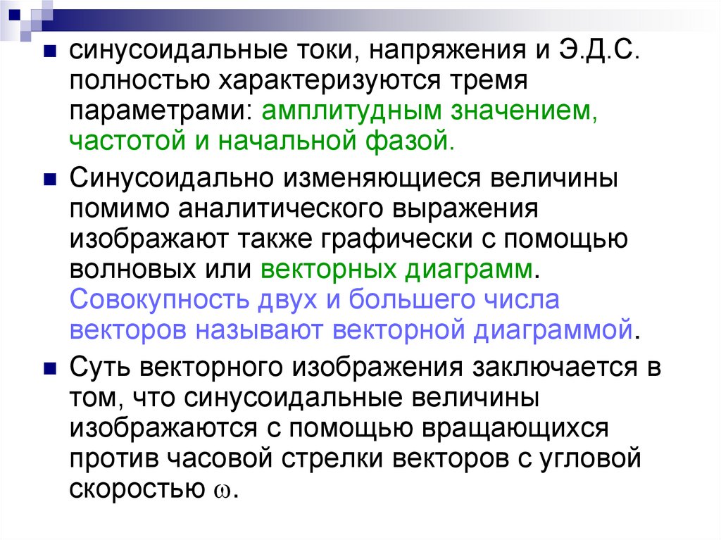 синусоидальные токи, напряжения и Э.Д.С.полностью характеризуются тремя