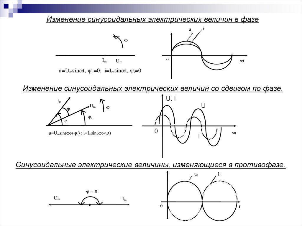 Изменение синусоидальных электрических величин со сдвигом по фазе.