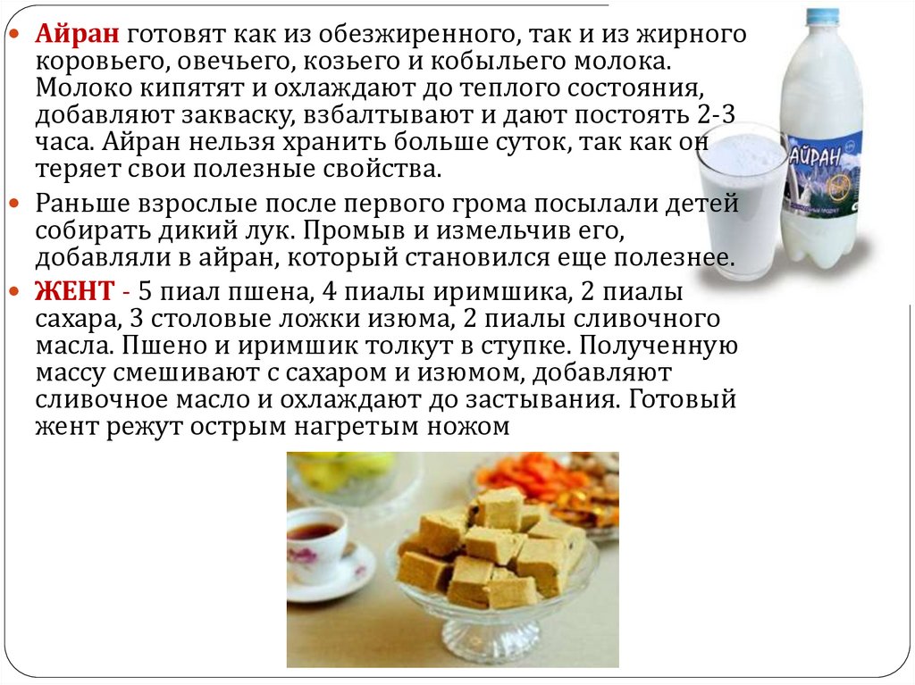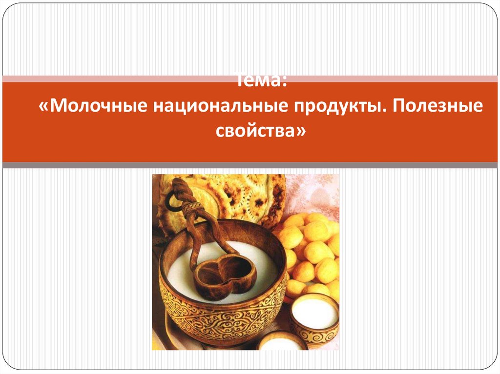 1. Тема: «Молочные национальные продукты. Полезные свойства»