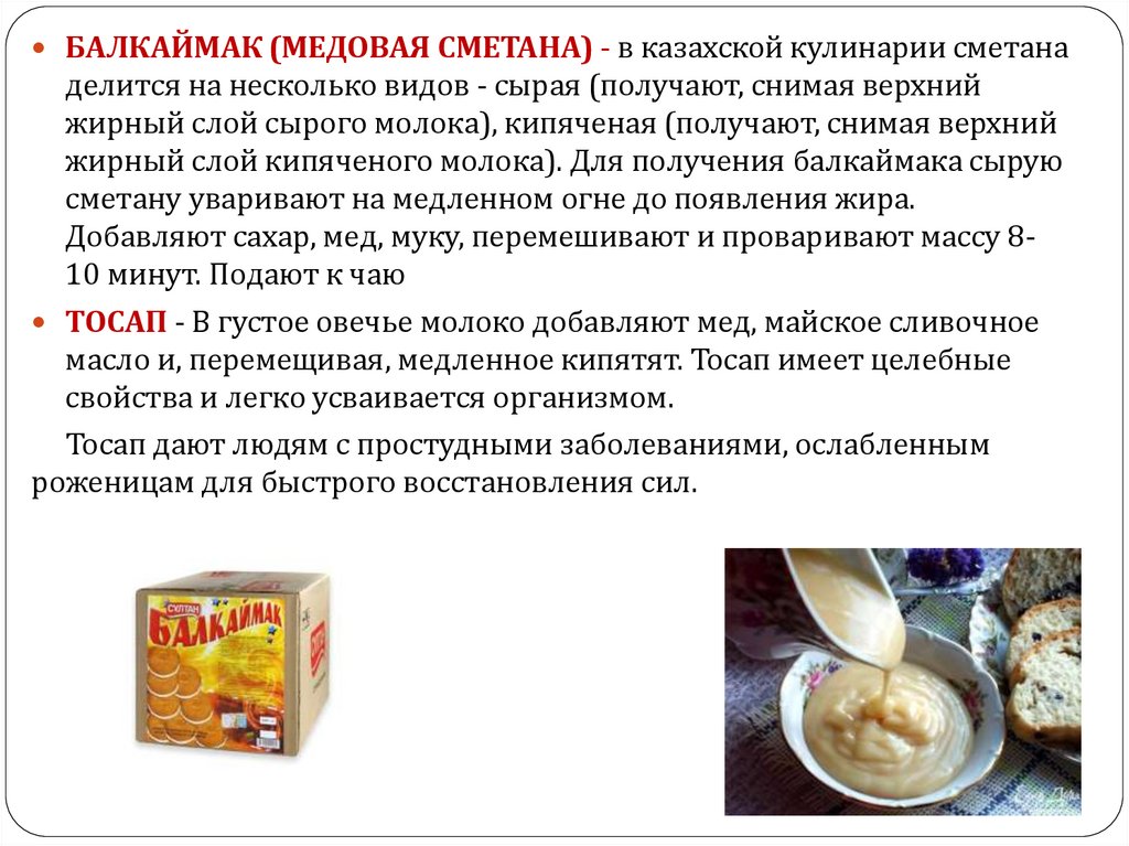 БАЛКАЙМАК (МЕДОВАЯ СМЕТАНА) - в казахской кулинарии сметанаделится на несколько видов - сырая (получают, снимая верхний