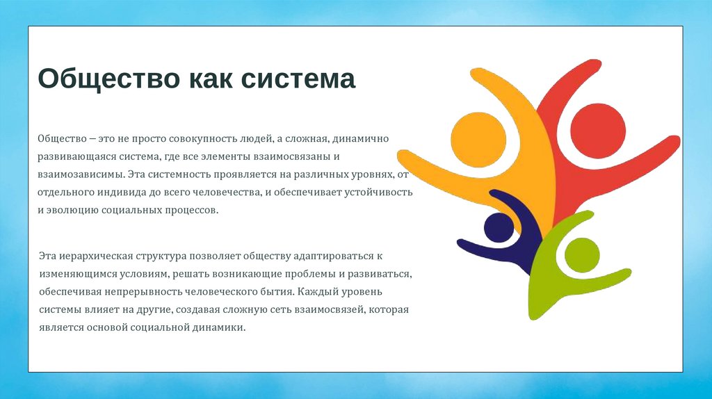 Общество как системаОбщество — это не просто совокупность людей, а сложная, динамично