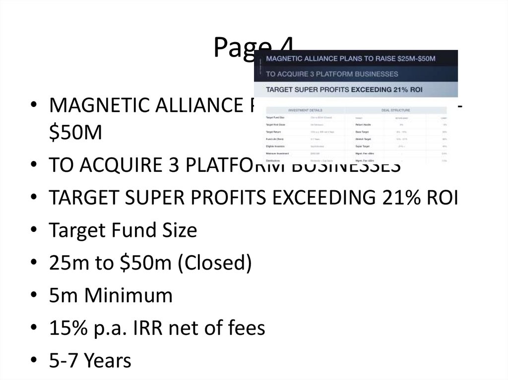 Page 4• MAGNETIC ALLIANCE PLANS TO RAISE $25M$50M