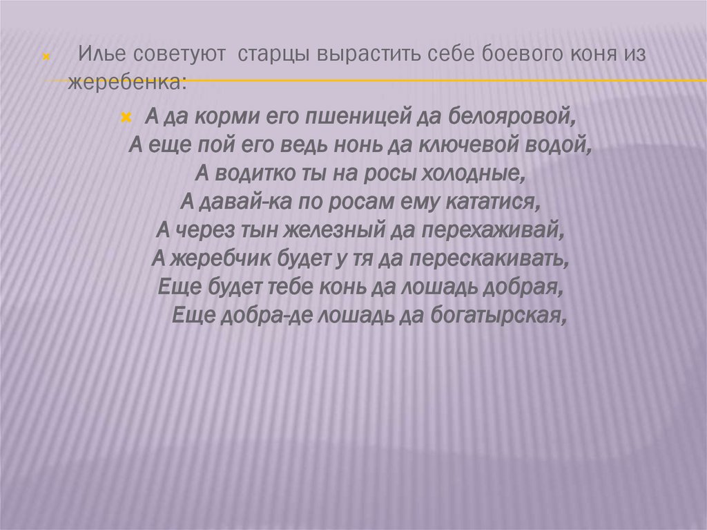 Илье советуют старцы вырастить себе боевого коня изжеребенка: