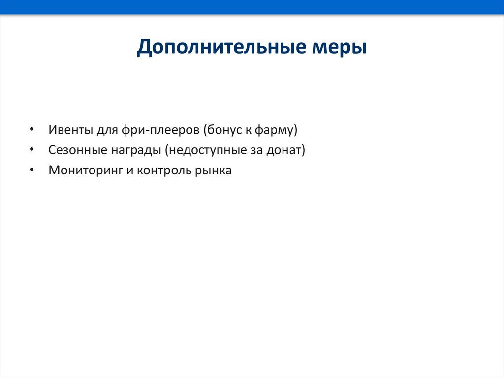 Дополнительные меры• Ивенты для фри-плееров (бонус к фарму)