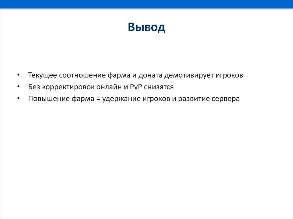 Вывод• Текущее соотношение фарма и доната демотивирует игроков
