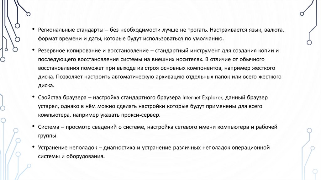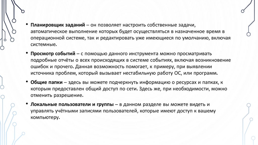 • Учётные записи пользователей – если компьютер используют несколько человек, то удобно