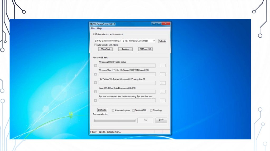 установочный диск Windows или Linux. WinSetupFromUSB поддерживает BIOS и UEFI, а