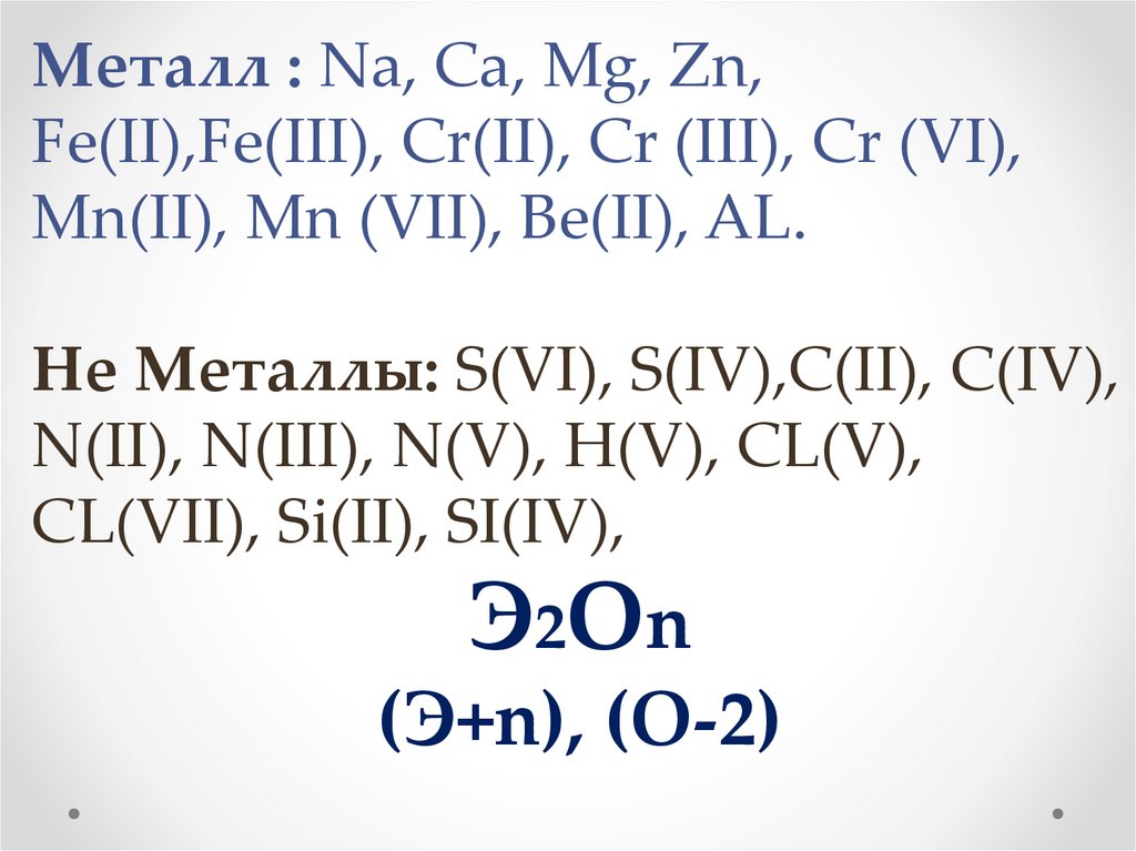 Не Металлы: S(VI), S(IV),C(II), C(IV),