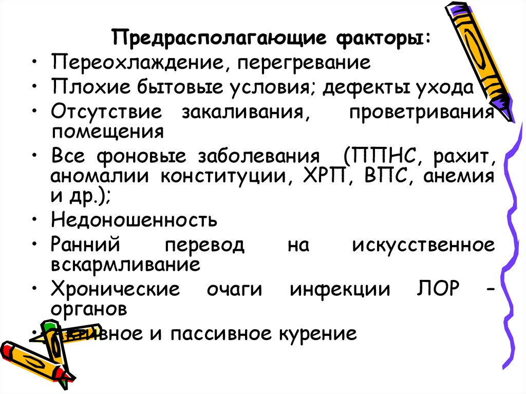 Предрасполагающие факторы:• Переохлаждение, перегревание