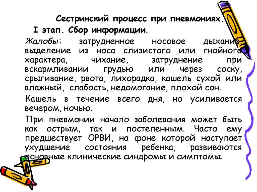 Сестринский процесс при пневмониях.I этап. Сбор информации.