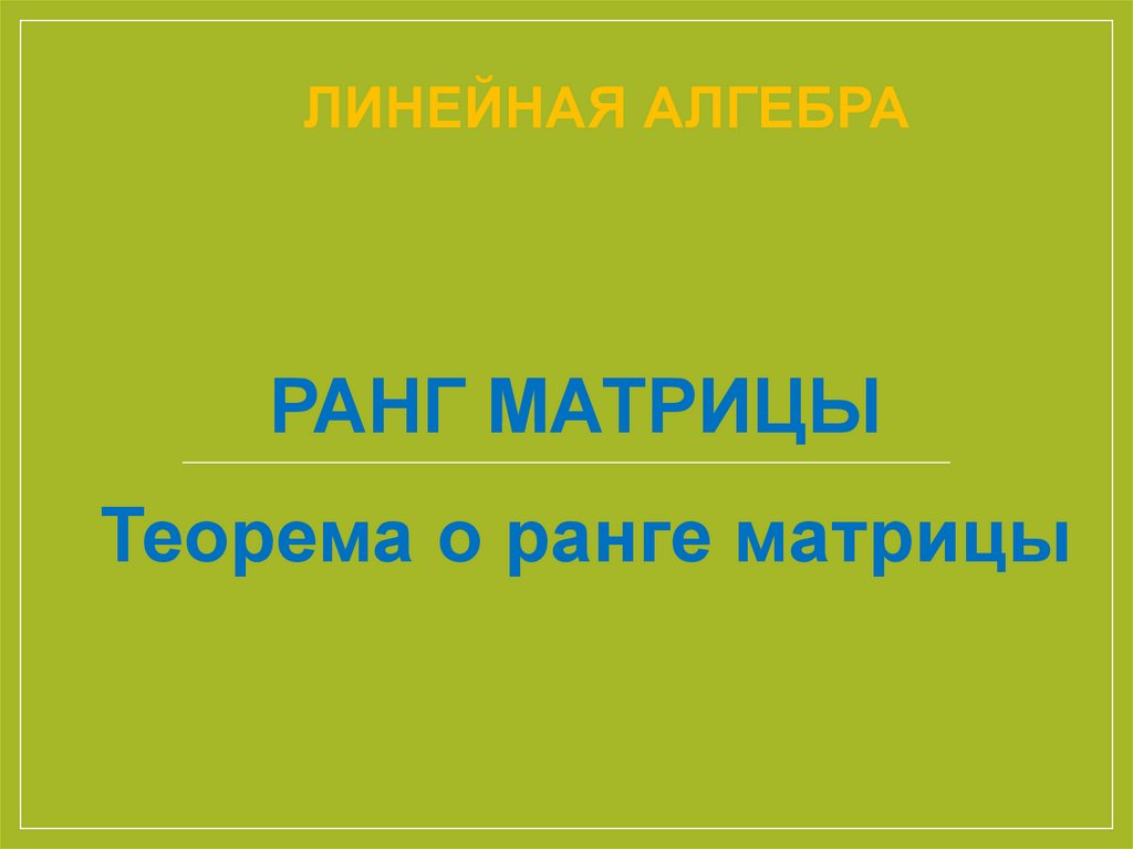ЛИНЕЙНАЯ АЛГЕБРАРАНГ МАТРИЦЫ