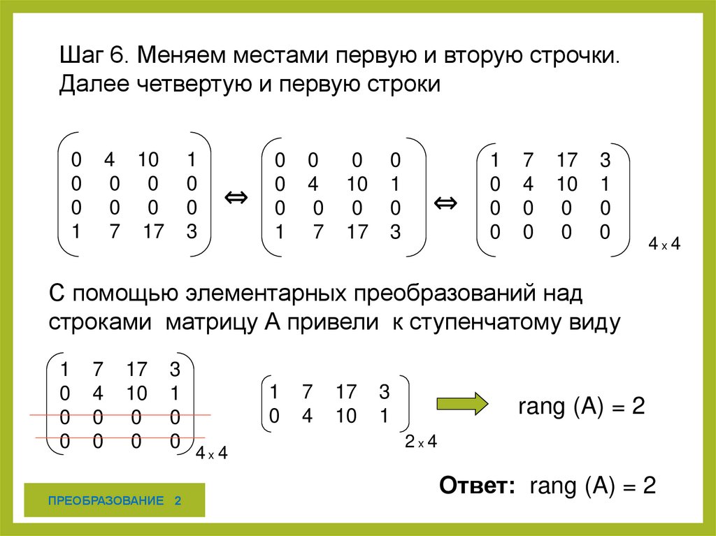 Шаг 6. Меняем местами первую и вторую строчки.Далее четвертую и первую строки