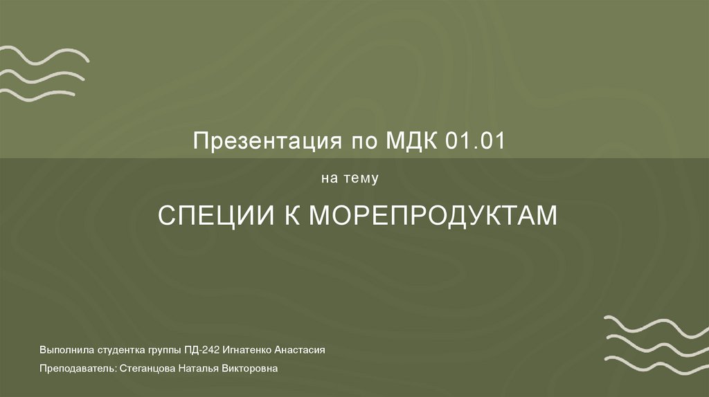 1. Презентация по МДК 01.01 на тему СПЕЦИИ К МОРЕПРОДУКТАМ