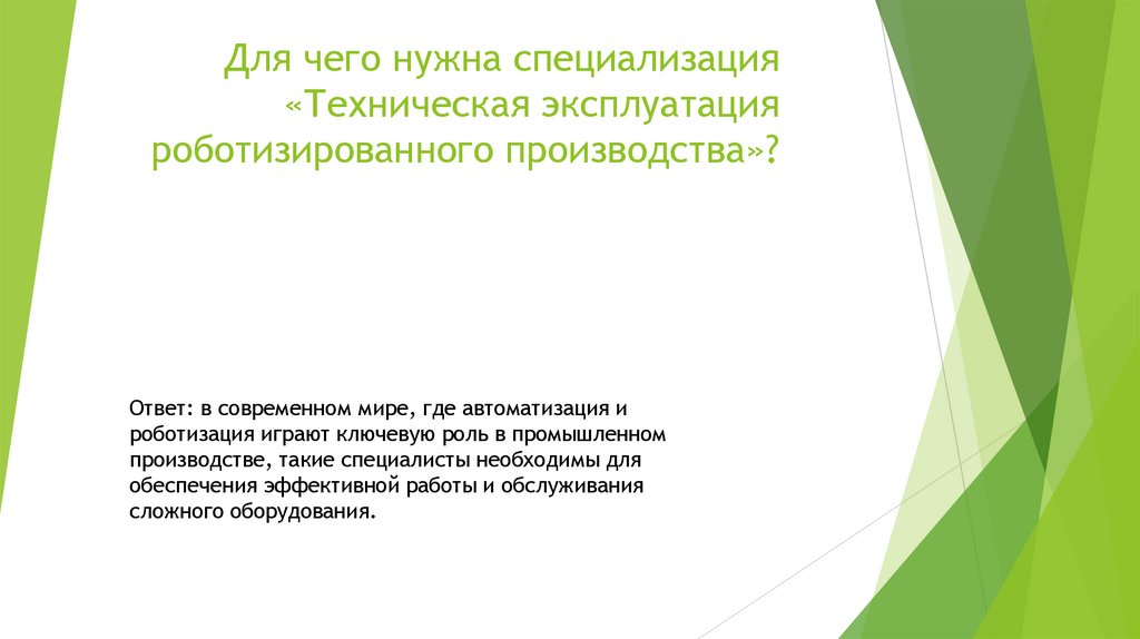 1. Для чего нужна специализация «Техническая эксплуатация роботизированного производства»?