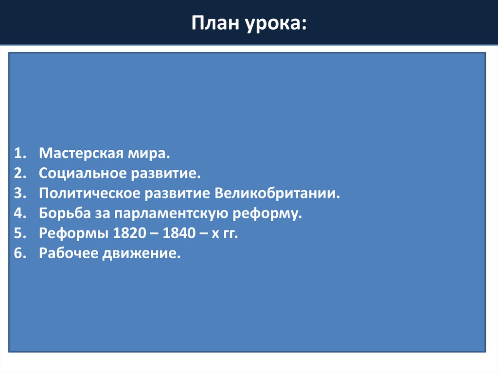 Великобритания: экономическое лидерство и политические реформы. Мастерская мира