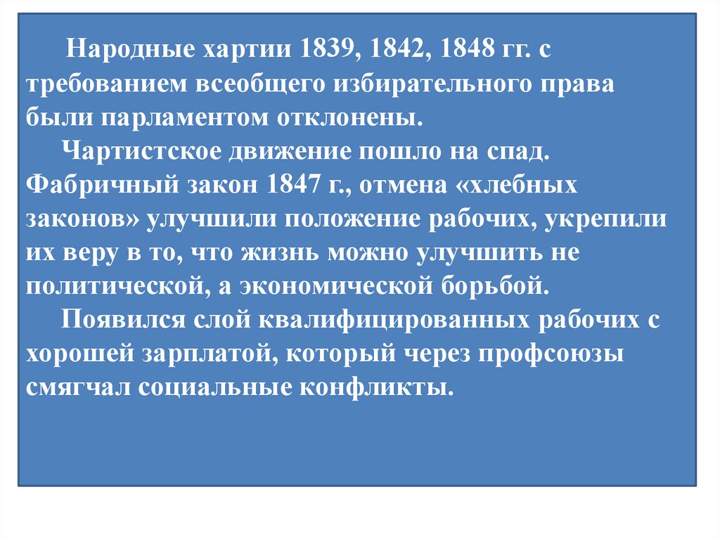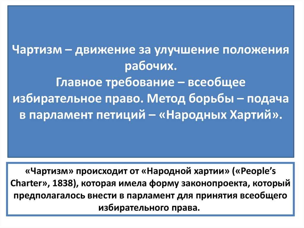 Народные хартии 1839, 1842, 1848 гг. стребованием всеобщего избирательного права