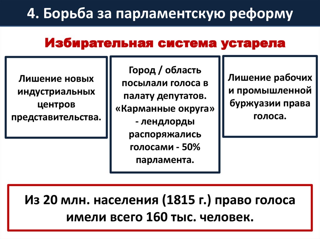 4. Борьба за парламентскую реформуИзбирательная система устарела