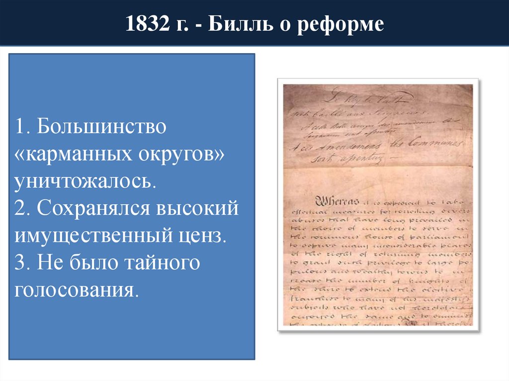 Только в 1884 г. 70% населения получили право голоса, кроме