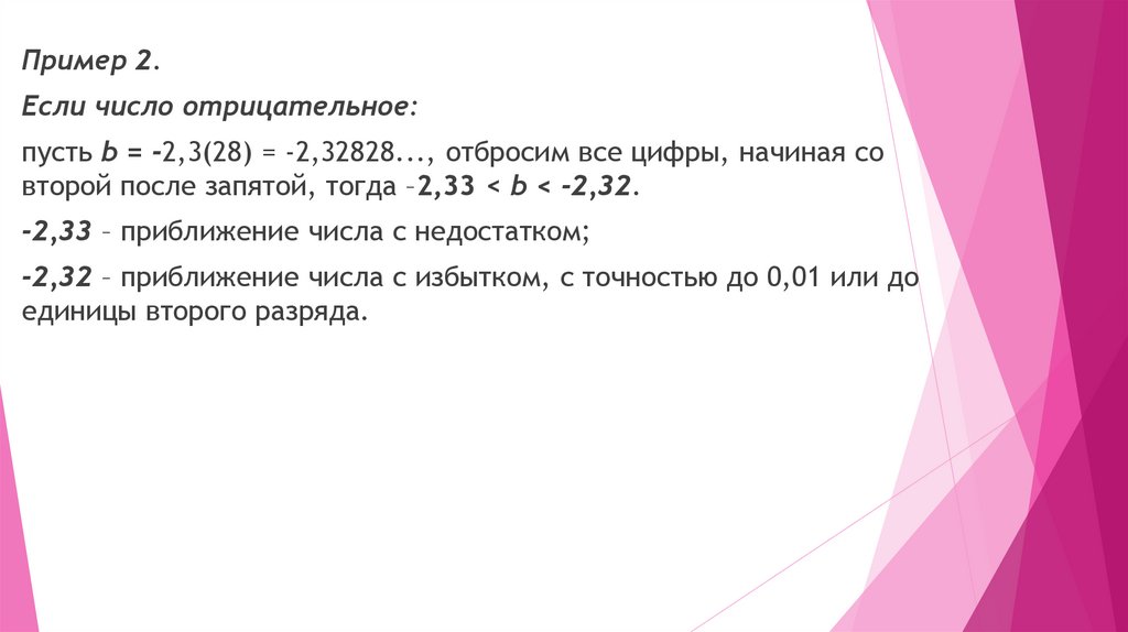 -2,32 – приближение числа с избытком, с точностью до 0,01 или до