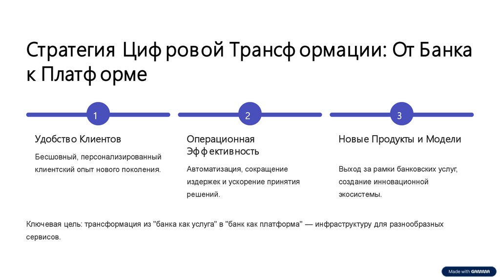 Ключевая цель: трансформация из "банка как услуга" в "банк как платформа" — инфраструктуру для разнообразных
