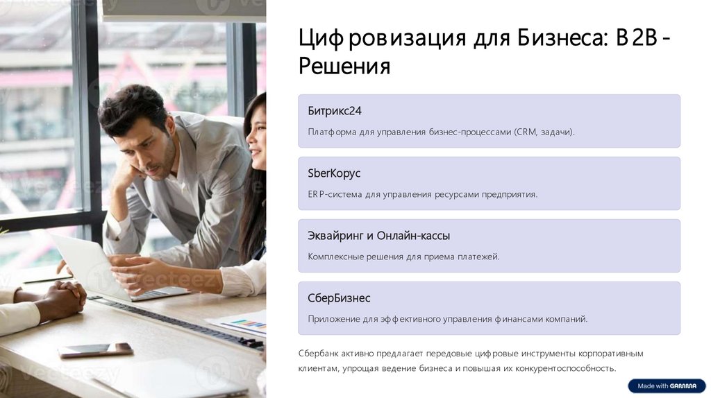 Сбербанк активно предлагает передовые циф ровые инструменты корпоративным