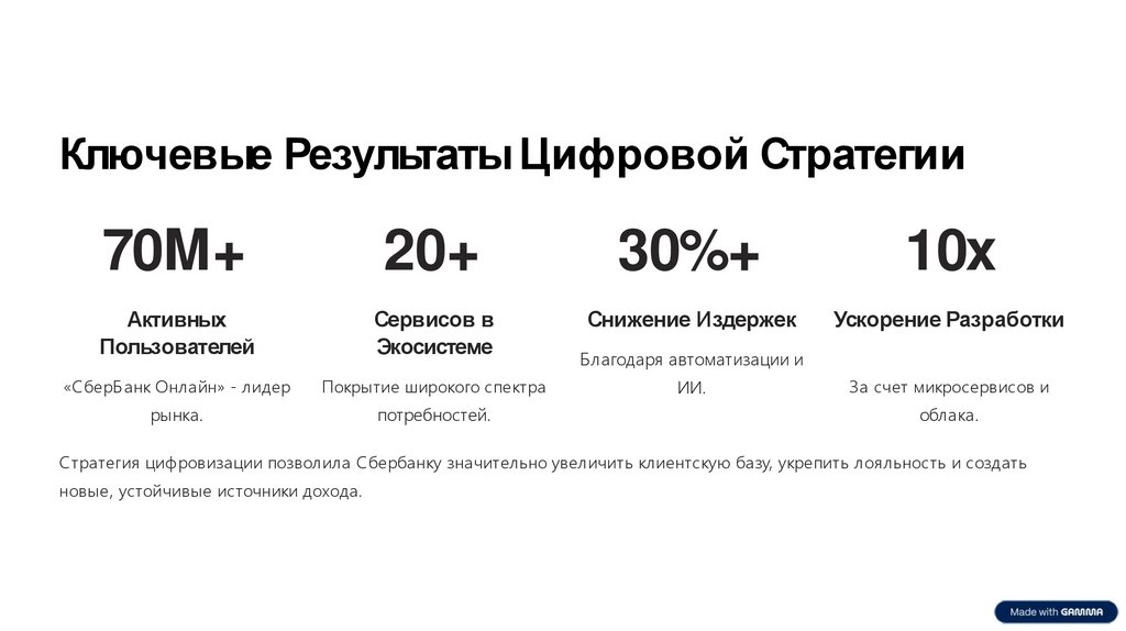 Циф ровая трансф ормация Сбербанка — яркий пример успешной и комплексной перестройки крупнейшей компании. Это