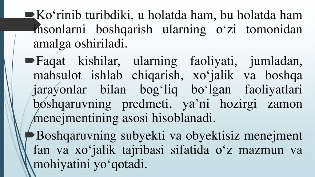 boshqaruvning predmeti, ya’ni hozirgi zamon