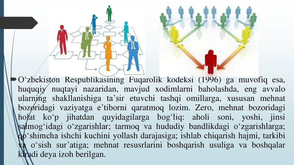 O‘zbekiston Respublikasining Fuqarolik kodeksi (1996) ga muvofiq esa,huquqiy nuqtayi nazaridan, mavjud xodimlarni baholashda, eng avvalo