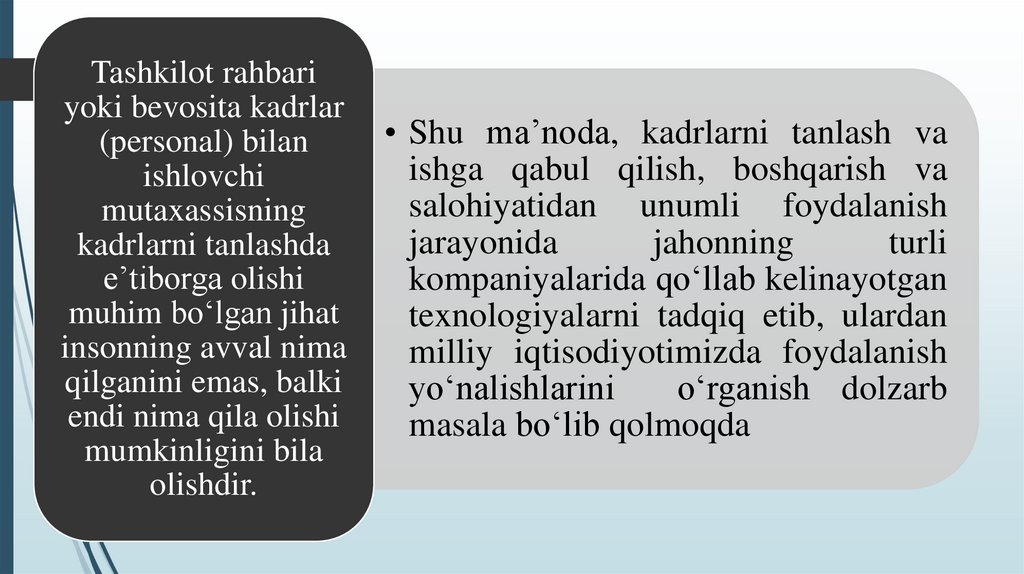 resurslari), oddiyroq qilib aytganda esa kadrlar bilan ishlash bo‘limining