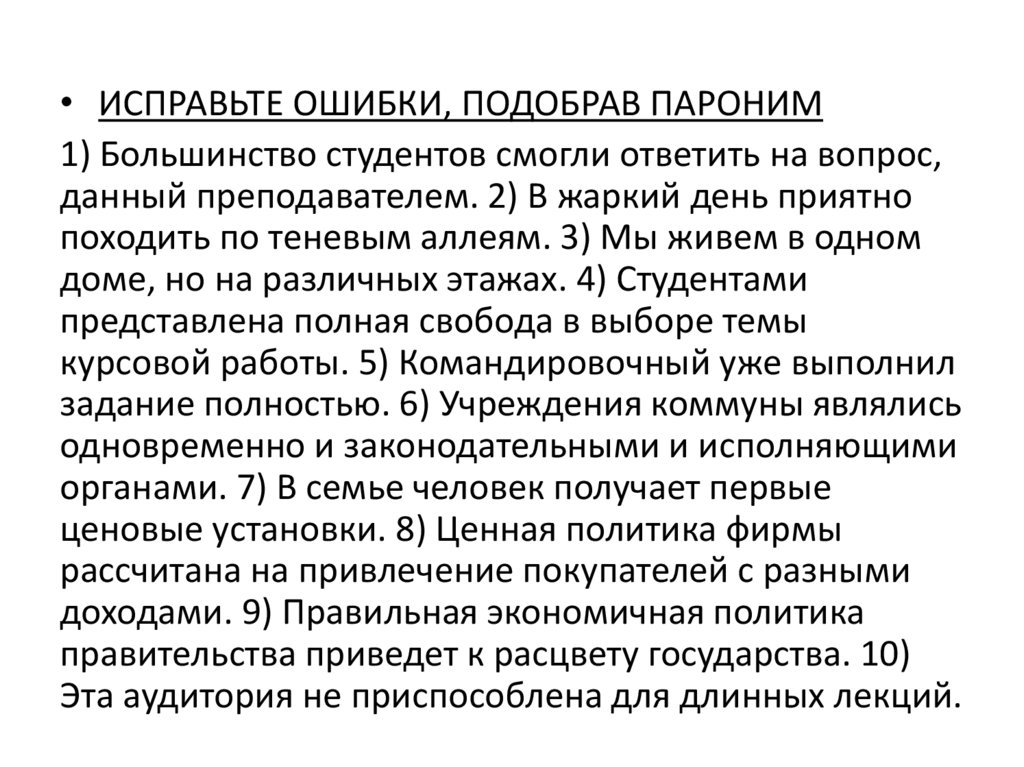 • ИСПРАВЬТЕ ОШИБКИ, ПОДОБРАВ ПАРОНИМ1) Большинство студентов смогли ответить на вопрос,