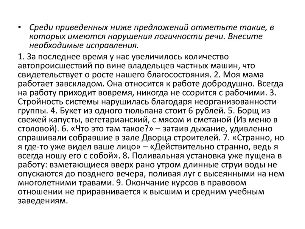 • Среди приведенных ниже предложений отметьте такие, вкоторых имеются нарушения логичности речи. Внесите