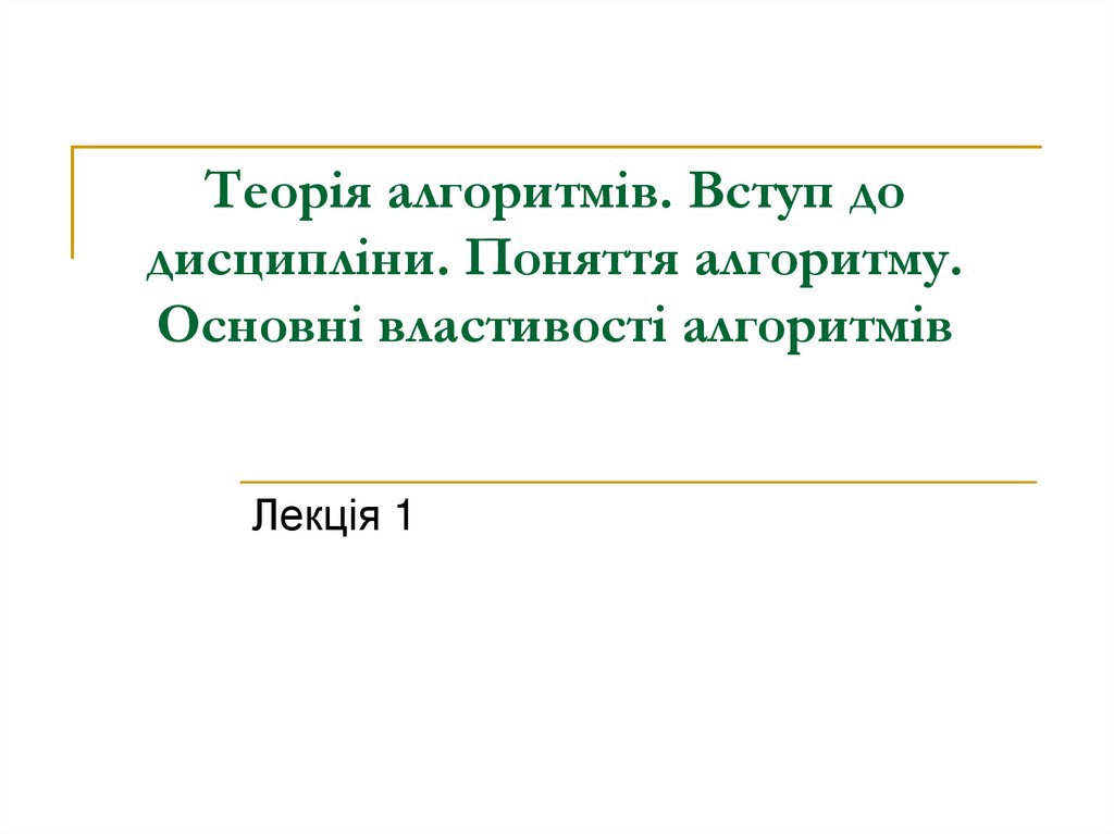 1. Теорія алгоритмів. Вступ до дисципліни. Поняття алгоритму. Основні властивості алгоритмів