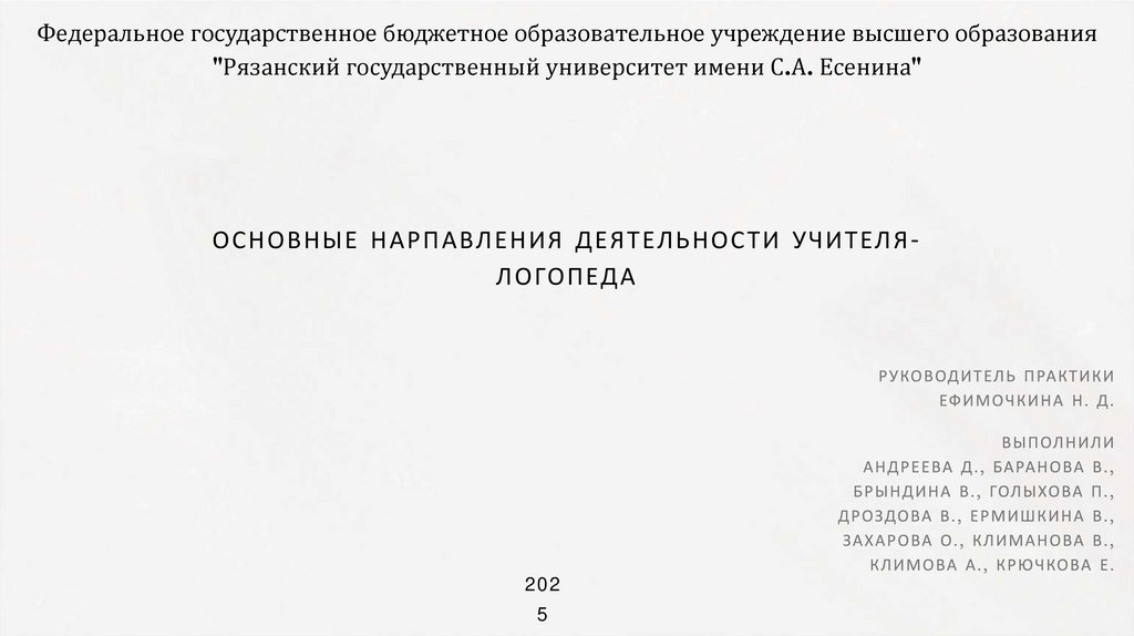 Федеральное государственное бюджетное образовательное учреждение высшего образования"Рязанский государственный университет имени С.А. Есенина"