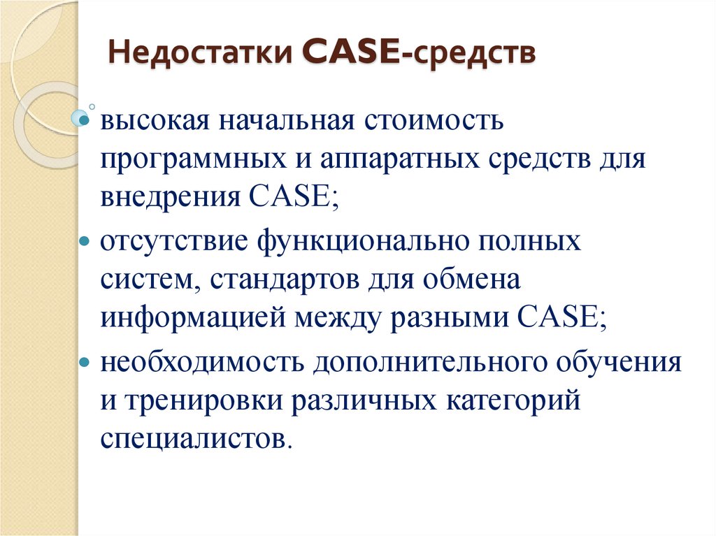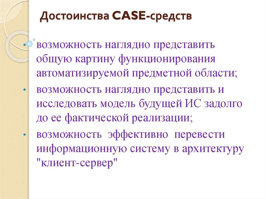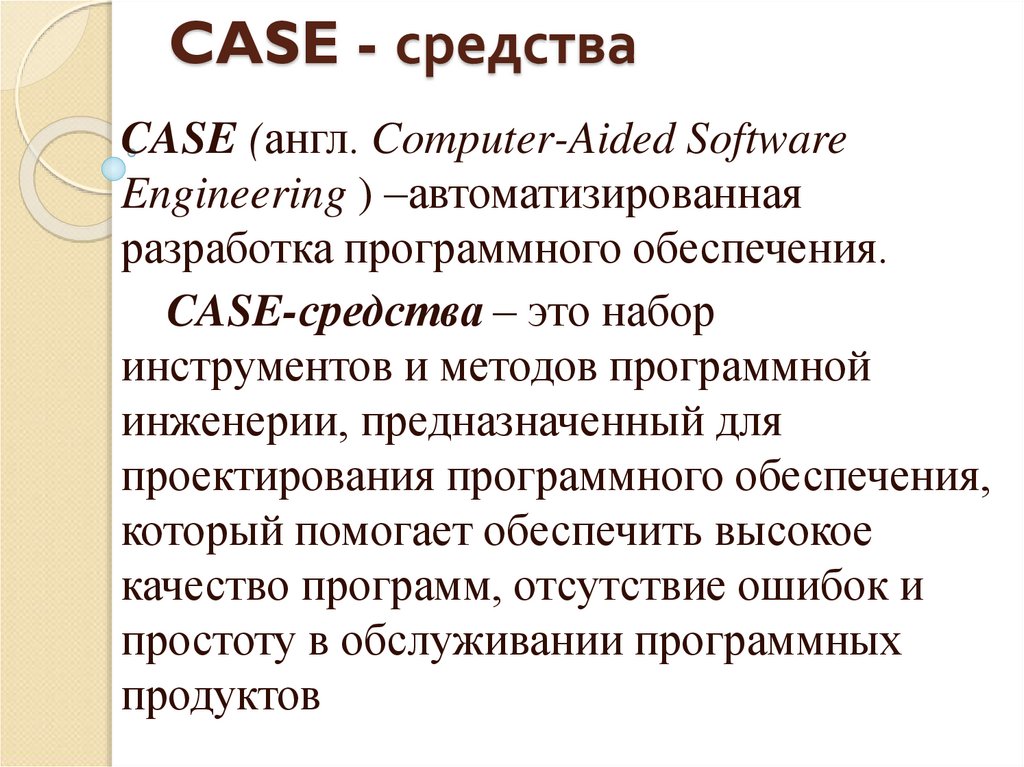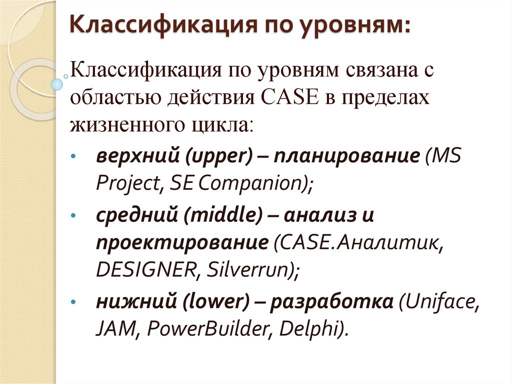 функциональную ориентацию CASEсредств в технологическом процессе и