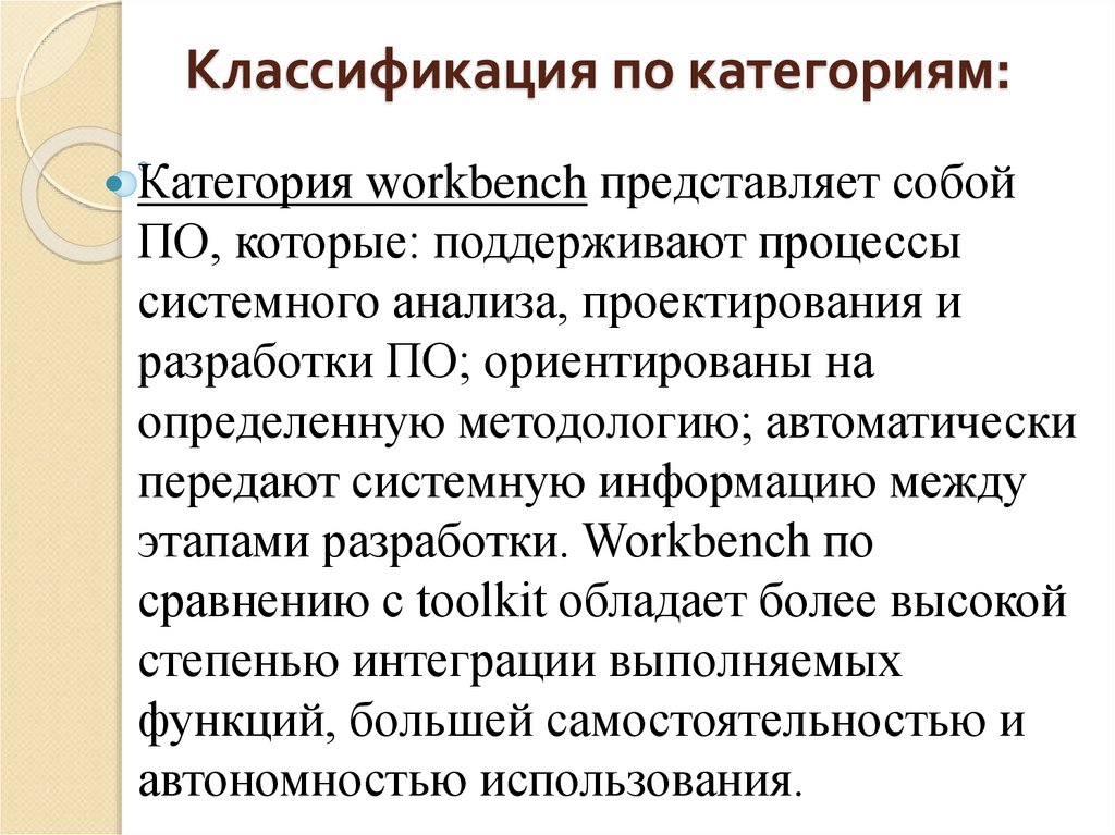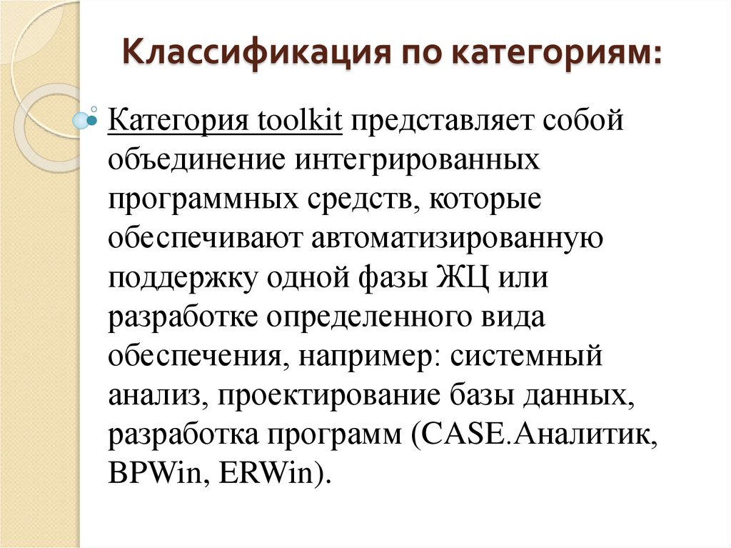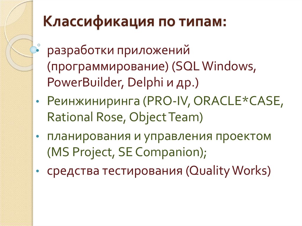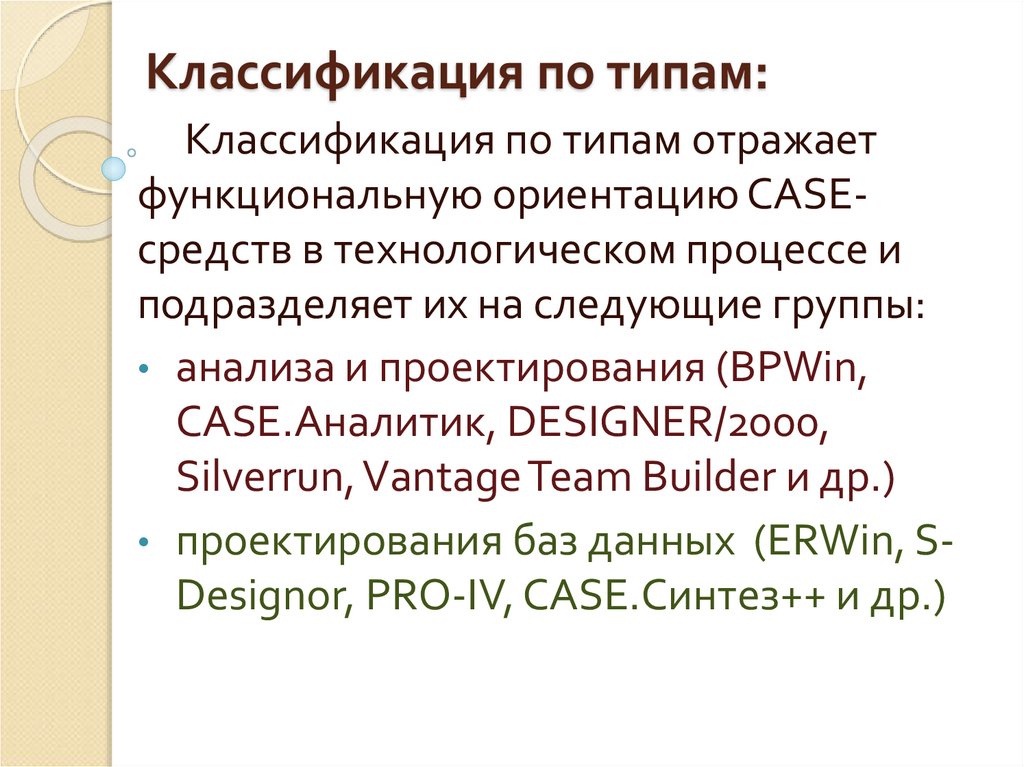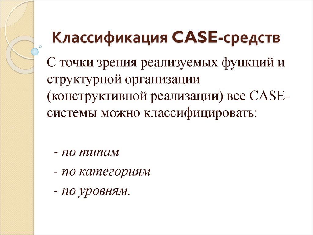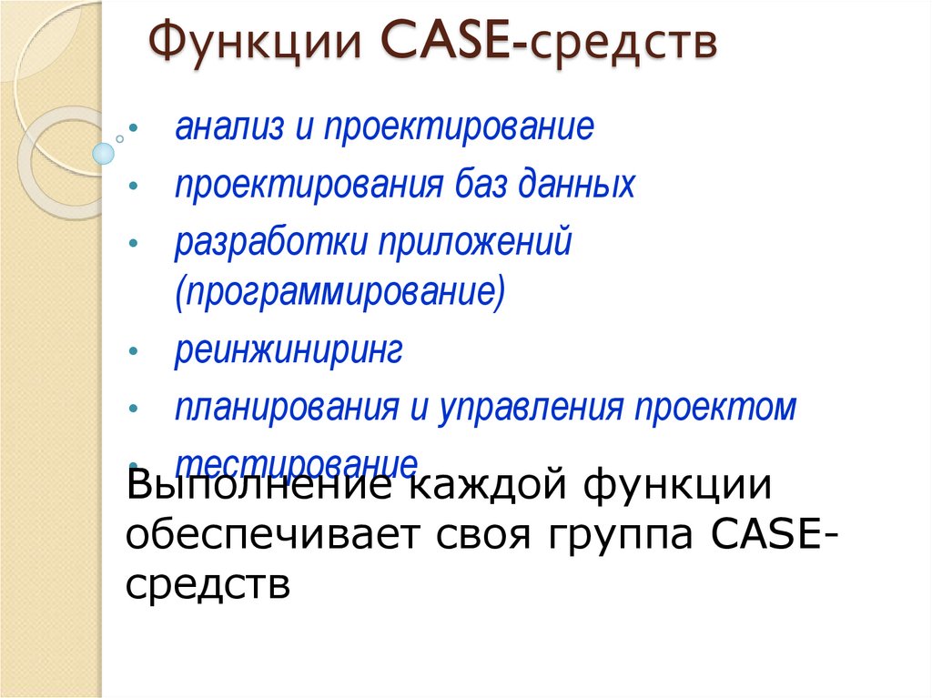 Классификация CASE-средствС точки зрения реализуемых функций и