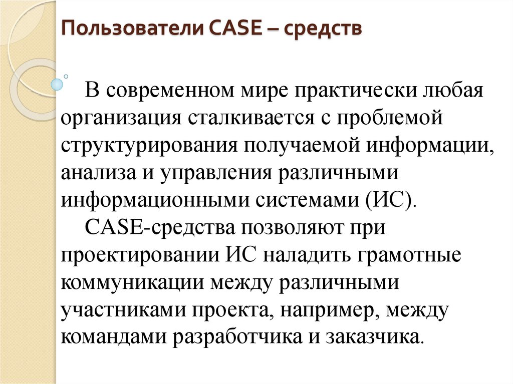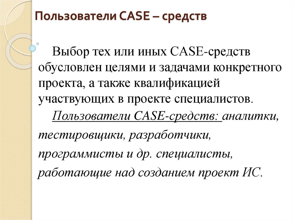 Пользователи CASE – средствВыбор тех или иных CASE-средств
