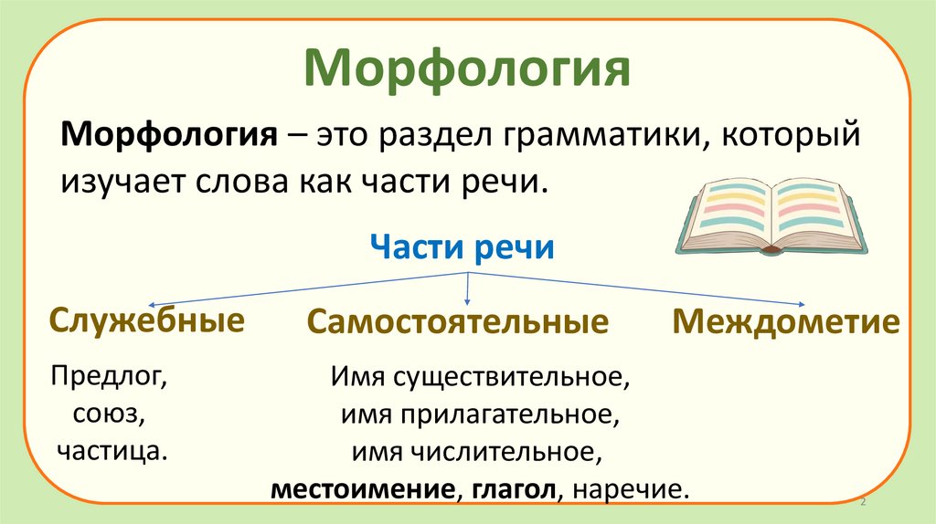 МорфологияМорфология – это раздел грамматики, который