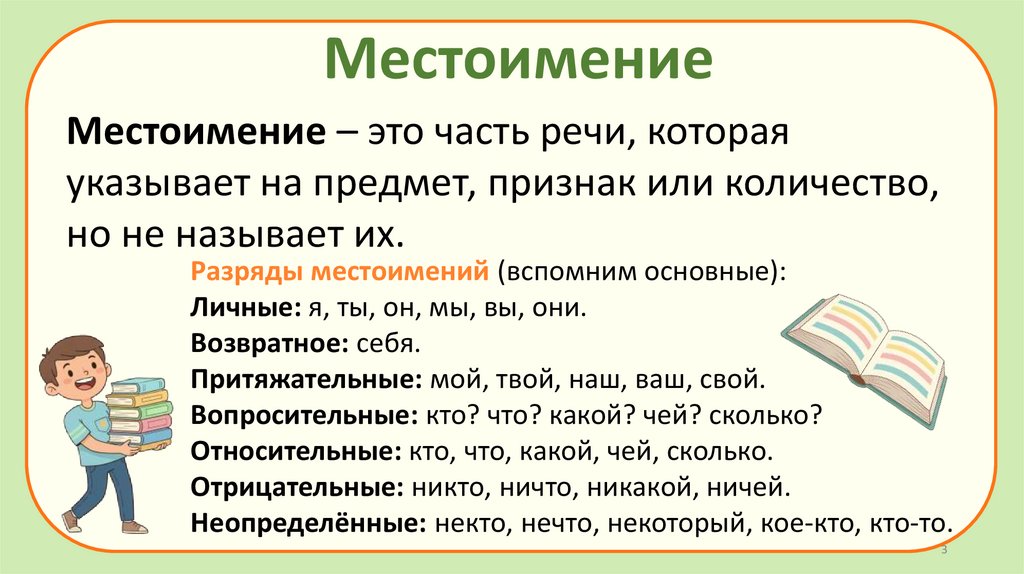 МестоимениеМестоимение – это часть речи, которая