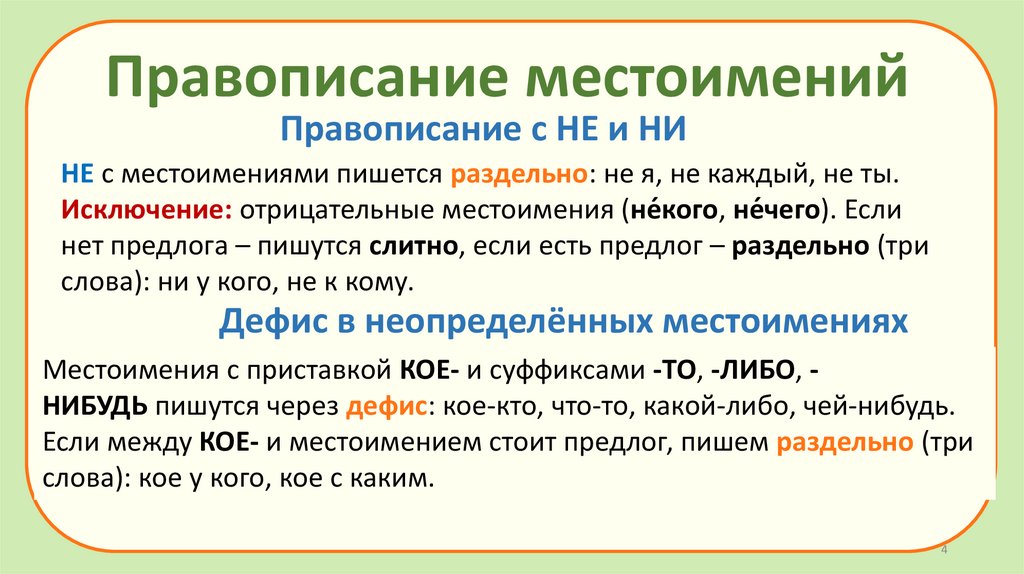 Правописание местоименийПравописание с НЕ и НИ