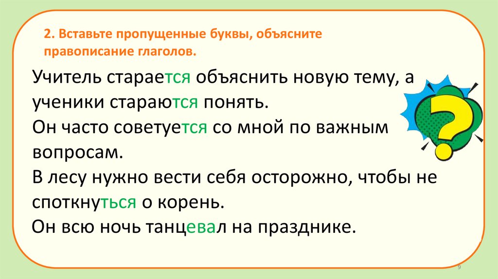 2. Вставьте пропущенные буквы, объяснитеправописание глаголов.