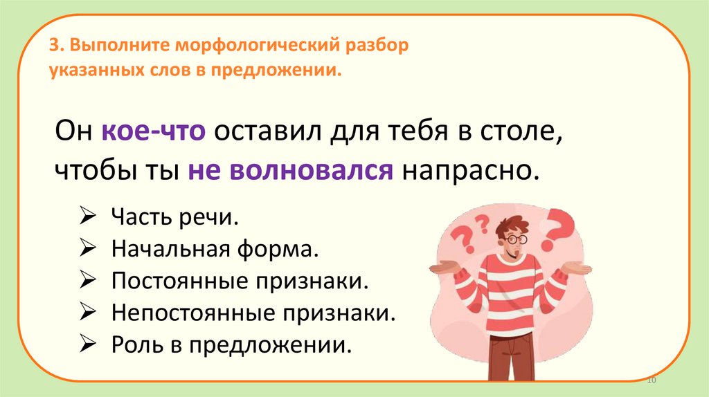 3. Выполните морфологический разборуказанных слов в предложении.