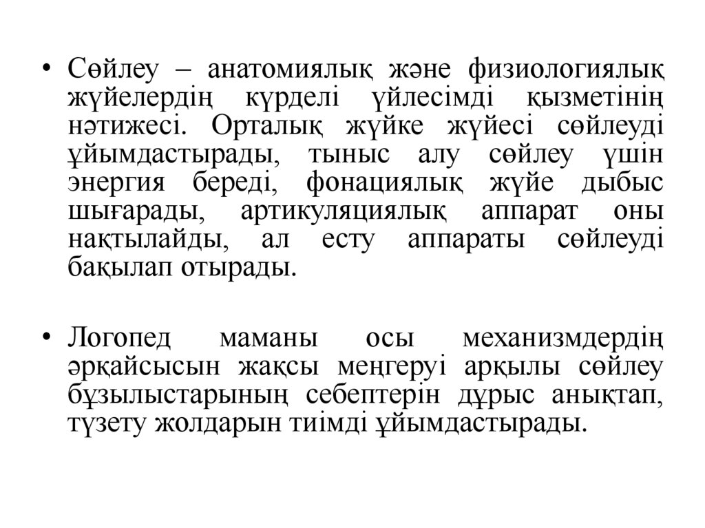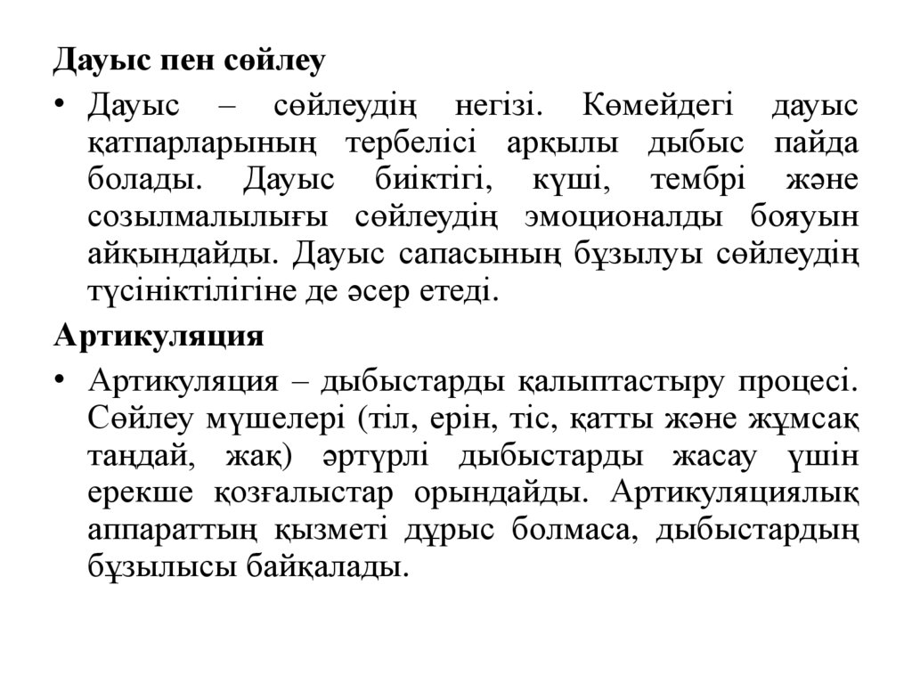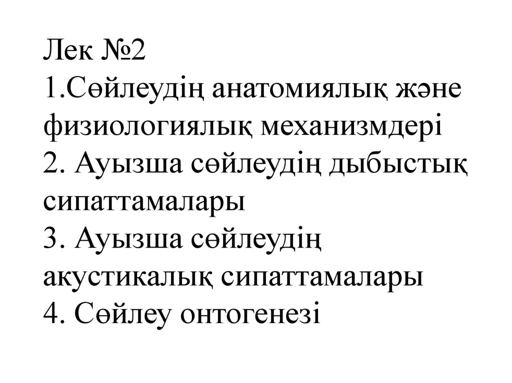 1. Лек №2 1.Сөйлеудің анатомиялық және физиологиялық механизмдері 2. Ауызша сөйлеудің дыбыстық сипаттамалары 3. Ауызша сөйлеудің
